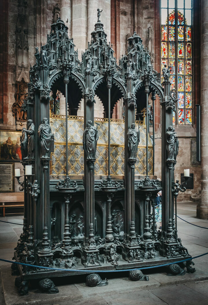 Ein weiteres Highlights der Kirche ist der “Englischer Gruß” – eine Holzplastik von Veit Stoß. Adam Kraft schuf das beeindruckend schöne Sakramentshaus, ein fast 20 Meter hohes Tabernakel aus Sandstein.