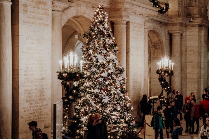 Direkt am Bryant Park findest du die New York Public Library, eine der größten Bibliotheken der Welt. Für alle Leseratten ist die Bibliothek an sich schon ein absolutes Highlight und auch das Gebäude ist architektonisch ein Gaumenschmaus. Bei all dem Trubel im Bryant Park ist die Bibliothek außerdem ein fantastischer Rückzugsort und einen Moment zu verschnaufen und die Ruhe zu genießen. Darüber hinaus ist die Bibliothek dezent, aber wunderschön weihnachtlich geschmückt und daher ein kleiner Geheimtipp für die Weihnachtszeit in New York.